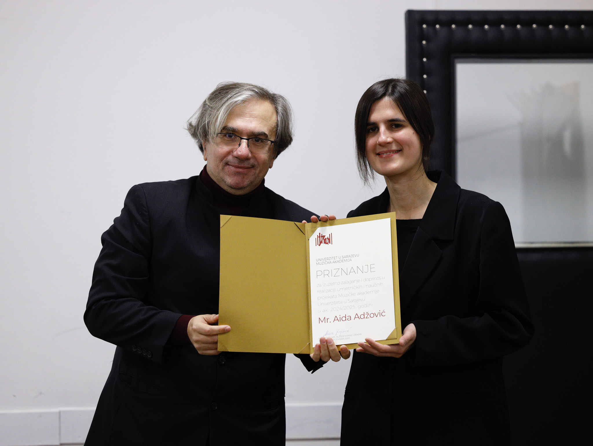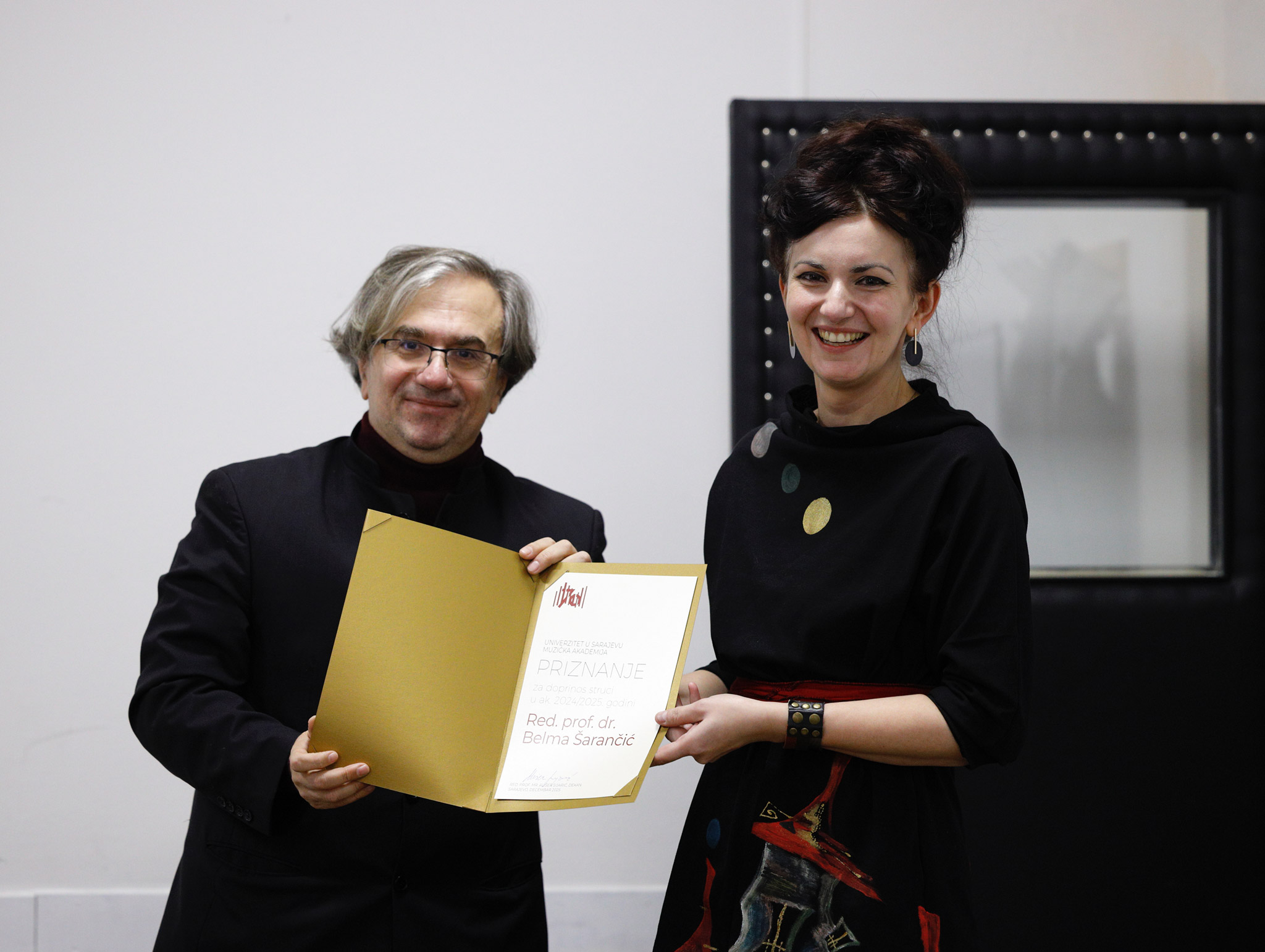 Priznanja za izuzetno zalaganje i doprinos u realizaciji umjetničkih i naučnih projekata Muzičke akademije UNSA dobili su mr. Aida Adžović i asst. mr. Rijad Kaniža, dok je zahvalnica za višedecenijski doprinos kolektivu Muzičke akademije UNSA uručena Hamdiji Lošić.