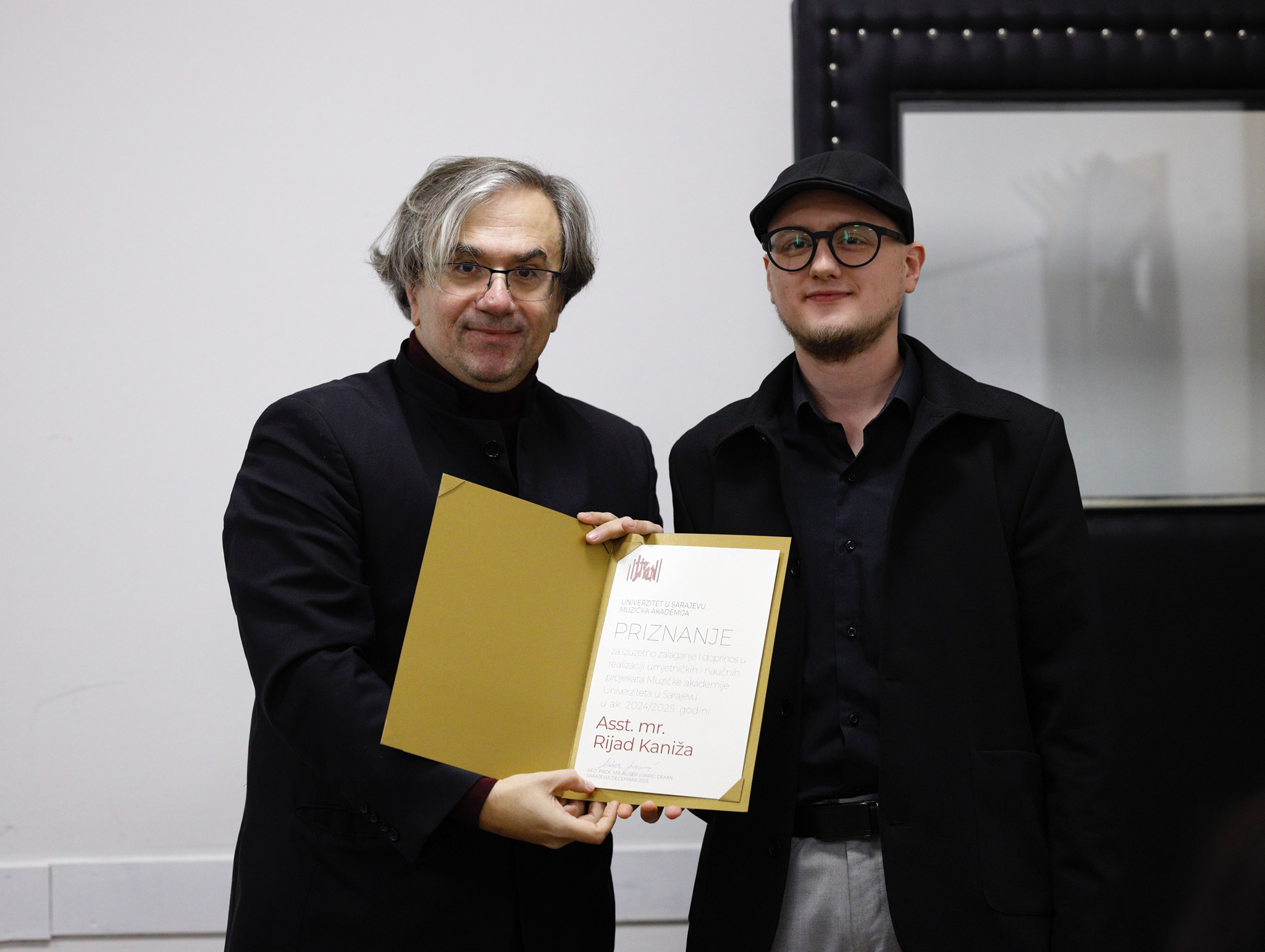 Godina obilježena proslavom 70. godišnjice osnivanja i kontinuiranog rada Muzičke akademije Univerziteta u Sarajevu zaokružena je svečanom sjednicom Nastavno-umjetničkog vijeća, na kojoj je predstavljena monografija nastala povodom ovog jubileja te upriličena dodjela nagrada i priznanja za ostvarenja u akademskoj 2024/25. godini akademskom i neakademskom osoblju. Svečanost je održana 30. decembra 2025. godine u Maloj sali Muzičke akademije.
