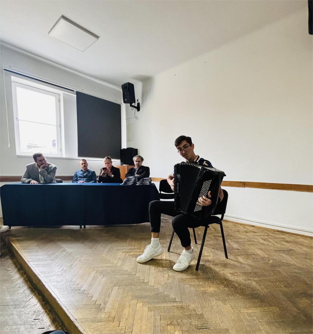 Otvaranje svečane podjele indeksa započelo je muzičkom numerom koju je izveo Atif Krdžić, student III. godine Odsjeka za duvačke instrumente i harmoniku, smjer Harmonika.