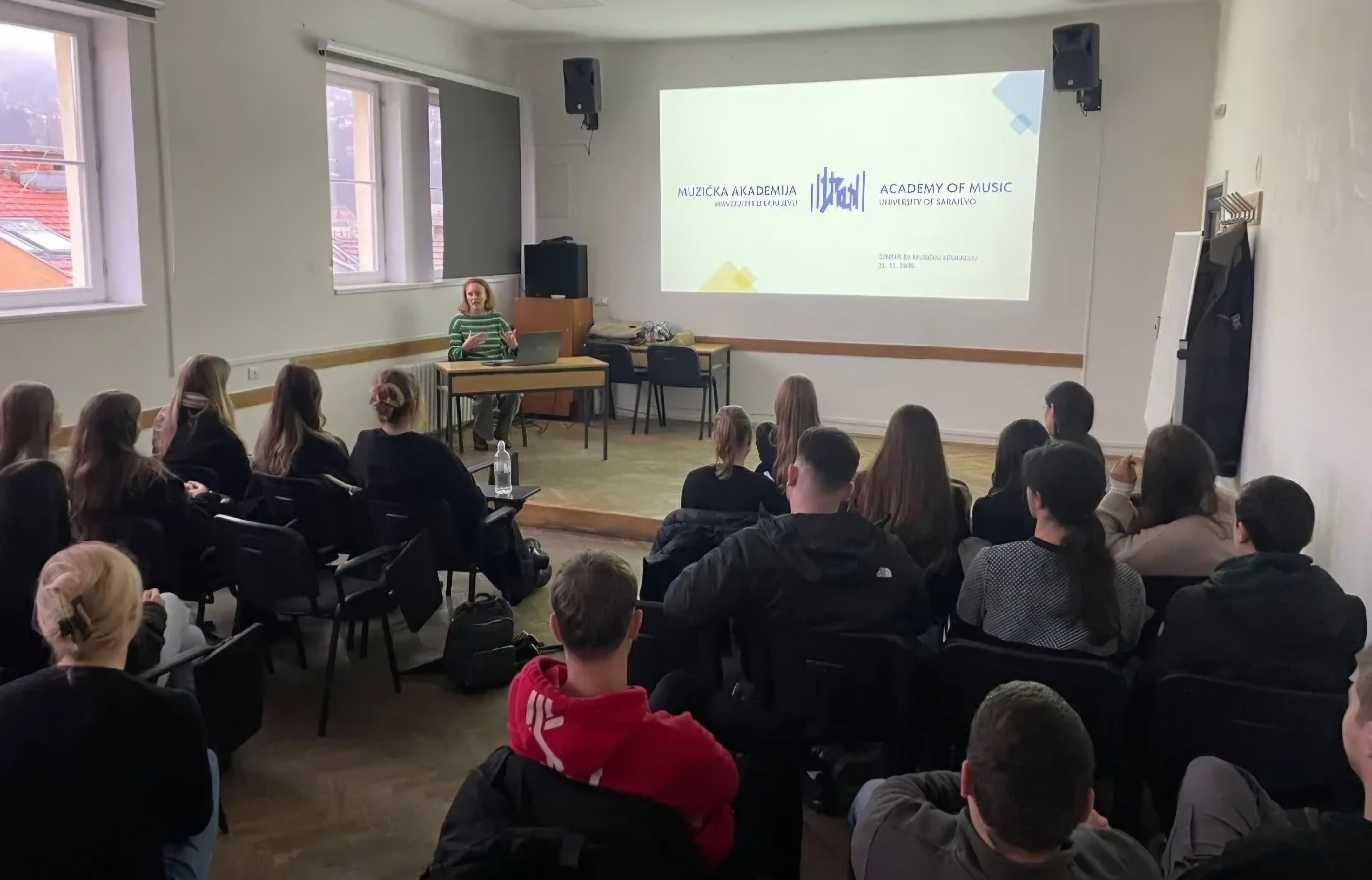 Na naše iznimno zadovoljstvo, dana 21. 11. 2025. godine Muzička akademija Univerziteta u Sarajevu ugostila je alumniste Akademije, Enu Brkić, prof, Bakira Memiševića, prof, Petru Perić, prof. i mr. Mirnu Šiširak, prof. Gosti alumnisti su uposlenici Muzičke škole I i II stupnja Mostar, te su ovom prilikom Muzičku akademiju posjetili zajedno s učenicima škole. Evocirajući uspomene, prisjećajući se aktivnosti i ostvarenih rezultata i uspjeha tokom studija na Univerzitetu u Sarajevu – Muzičkoj akademiji, te kroz razgovor sa šeficom Centra za muzičku edukaciju MAS prof. dr. Nermom Hodžić-Mulabegović učenicima su prenijeli dašak svojih studentskih dana.